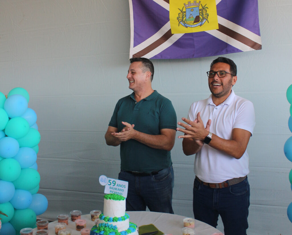No Centreventos, a prefeitura preparou 3 mil pedaços de bolo que serão distribuídos gratuitamente. O corte oficial do bolo também foi no Centreventos, com a participação do prefeito de Balneário Piçarras, Tiago Baltt, perto do meio-dia.