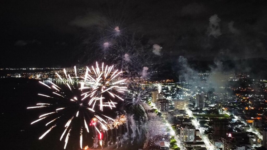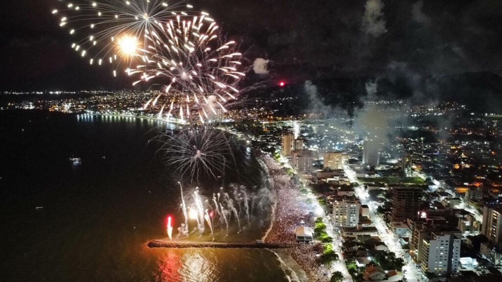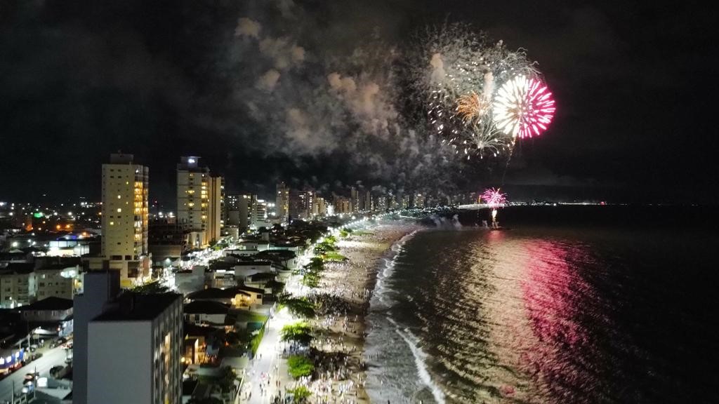 À meia-noite, o céu de Balneário Piçarras foi iluminado por uma sequência de 23 minutos de muita luz. O público que estava na orla acompanhou o belo espetáculo organizado pela prefeitura, que também montou um palco na praia com shows ao vivo desde sexta-feira (30).